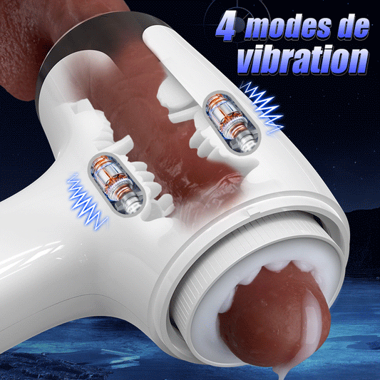Warming - Masturbateur masculin 2-en-1 avec vibration et télescopage simulant la température de la cavité buccale