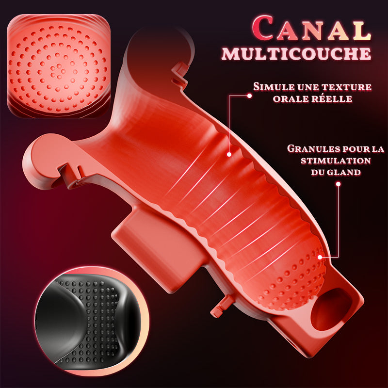 9 vibrations puissantes, associées à une texture interne granulaire, offrant une stimulation intense au gland;