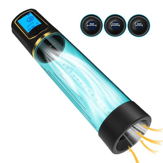 Green Pioneer - Pompe à pénis à eau avec écran LCD, 4 niveaux de pression et 9 modes d'aspiration