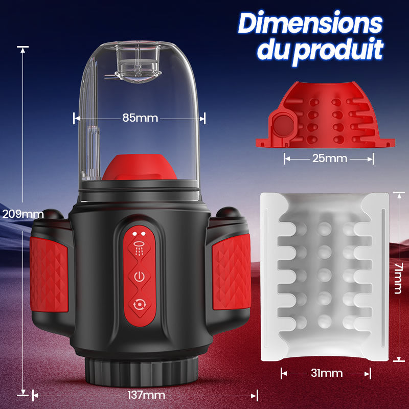 - "Conception deux-en-un" : le couvercle est détachable et peut également être utilisé comme masturbateur traversant.